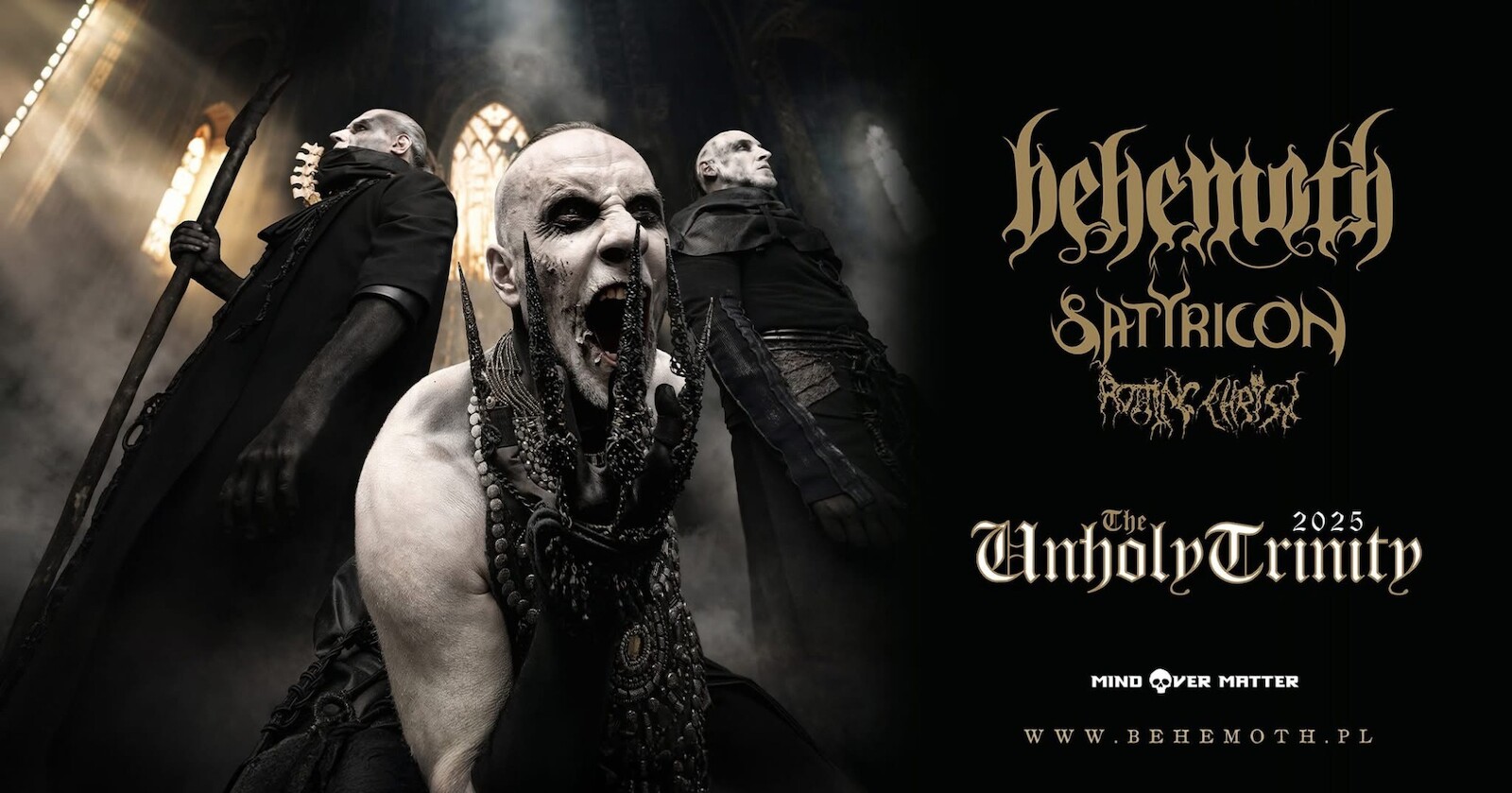 Polští blackmetaloví titáni Behemoth ohlašují extrémní metalovou událost roku 2025, jejímiž speciálními hosty budou legendární norští blackmetaloví průkopníci Satyricon. Ze starověkého Řecka přijedou Rotting Christ a doplní tak "nesvatou trojici".