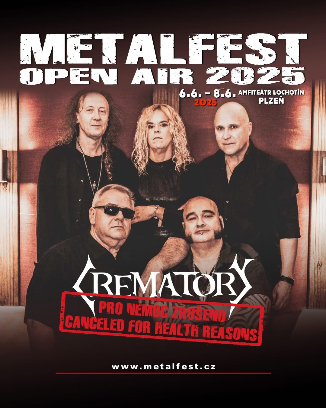 Markusovi přejeme brzké uzdravení a vám všem děkujeme za pochopení. CREMATORY se na vás budou těšit za rok, na METALFESTU 2026.