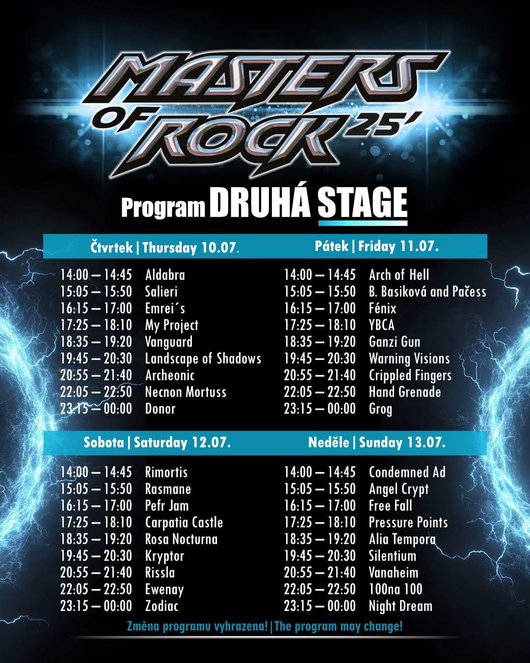 Program „DRUHÁ STAGE“ Masters of Rock 2025:
