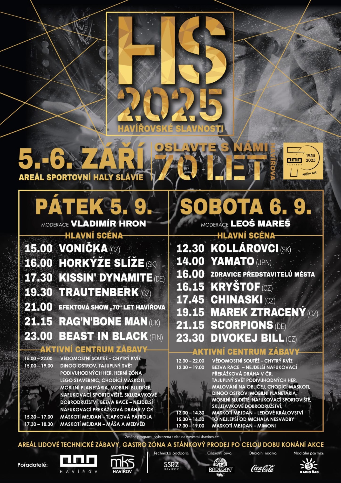 Můžete se těšit na nezapomenutelný zážitek multižánrové hudby a spoustu doprovodné zábavy ve dnech 5. a 6. září 2025 v areálu Sportovní haly Slávie v Havířově.
