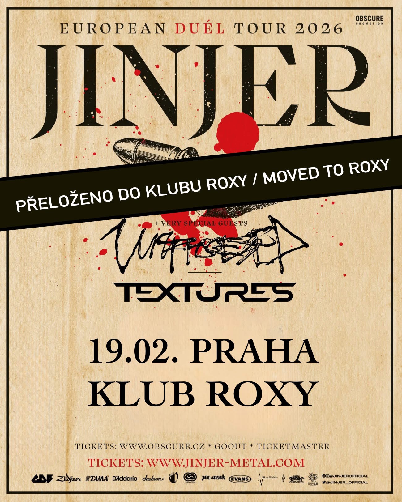 K únorovému koncertu Jinjer v pražském ROXY se právě přidal neuvěřitelný support v podobě dvou obrovských progressive metalcorových kapel - německých Unprocessed a jejich nizozemských kolegů Textures!