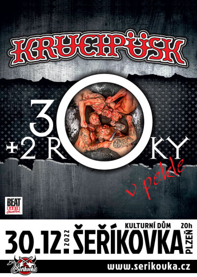 Vážení milovníci poctivého Rock’n’Roll, milé fanynky, fanoušci a fanouščata Krucipüsk. Krucipüsk vyráží po velmi příjemném létě plného festivalů, na podzimní TOUR „30+2 ROKY V PEKLE“, které začíná 4.11. a končí 30.12.2022 a čítá 15 vystoupení v Čechách a na Moravě podporovaných naším mediálním partnerem Rádiem Beat. Diváci se mohou těšit na své oblíbené songy, ale také na písně, které již léta živě nezazněli a to celé, jinak to ani nelze definovat, v krucipüsčím hávu? Toto tour managment Krucipüsk připravil k vydání audiovizuálního záznamu a vydání limitované edice 999(číslovaných) ks 3xLP ze slavnostního koncertu „ 30+2 ROKY V PEKLE“, který proběhl po třech přeložených termínech dne 1.4.2022 v pražském Fóru Karlín. Oba nosiče vychází u vydavatelství Krucipüsk opět v magické datum 1.11.2022 a fanoušci si je budou moci pořídit osobně na koncertech i e-shop po dobu celého tour. Je se tedy na co těšit. Obsazení Krucipüsk: Tomáš Hajíček sr. -Voc Tomáš Hajíček jr. -Drums Davído Pavlík -Guitar Pepé Křeček -Bassguitar
