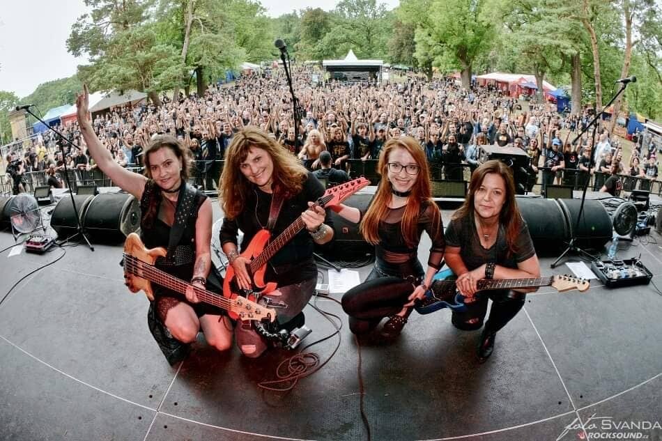 A ze stran toho, jak je těžké se vrátit tam, kde jsme kdysi skončily: Ano, v dnešní době, kdy se k nám hrne muzika z celýho světa a lidi si můžou zajet na koncert, koho se jim zachce, je to samozřejmě složitý. Ale my máme dvě obrovský devizy: tou první je právě ta výše zmiňovaná radost a chuť si spolu zahrát, a tou druhou je náš manažer, kterej nám nejenom shání super koncerty, ale je to i jedinej chlap v týmu, kterej nám umí pomoct tam, kde je potřeba, nakopnout nás (samozřejmě jen obrazně ) k vyšším výkonům, dodat nám sílu, když ji ztrácíme a pochválit nás, když se nám něco povede, což potěší každou babu... Navíc je to náš kamarád, na kterýho je spoleh, takže tvoříme v současné době fakt silnej tým!