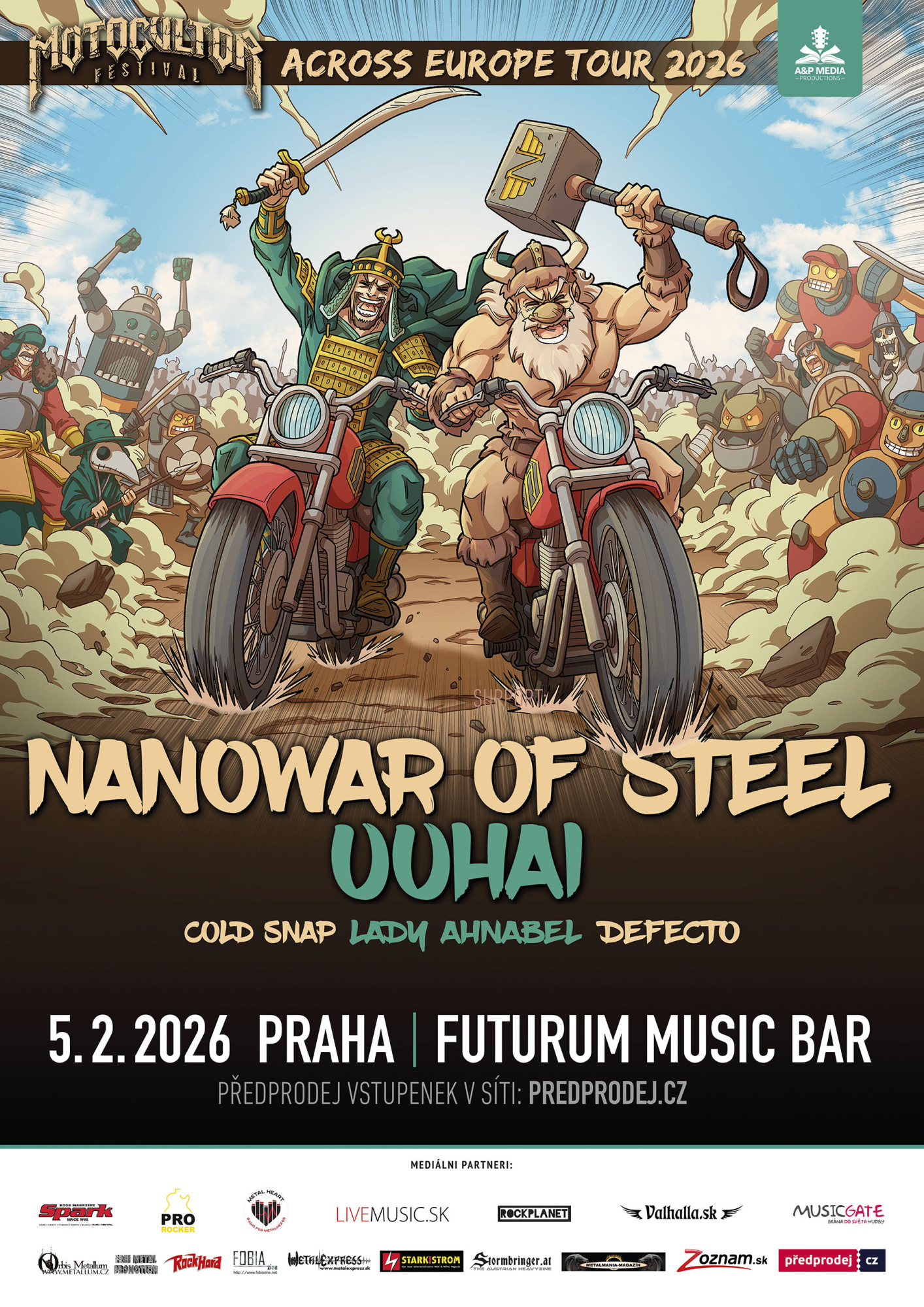 Ako všetci dobre vieme, sú kapely a Kapely. Niektoré sa berú možno až príliš vážne, iné sú viac ,,down to Earth“, ale potom je tu aj špeciálna kategória, ktorá život berie s humorom. Presne takí sú Taliani NANOWAR OF STEEL s ich comedy heavy metalom. Že ste sa nevedeli dočkať, kedy sa ukážu v našich končinách? Ani to nie je problém! Už začiatkom budúceho roka sa totiž zastavia v pražskom Futurum Music Bare a bratislavskom Randale. U českých susedov si ich môžete vychutnať 5. februára, u nás o dva dni neskôr - 7. februára v rámci - Motocultor Across Europe Tour 2026. Sekundovať im budú hneď 4 žánrovo rôzne zoskupenia zo štyroch kútov sveta - mongolskí UUHAI, Chorváti SNAP COLD, Dáni DEFECTO a francúzski LADY AHNABEL.