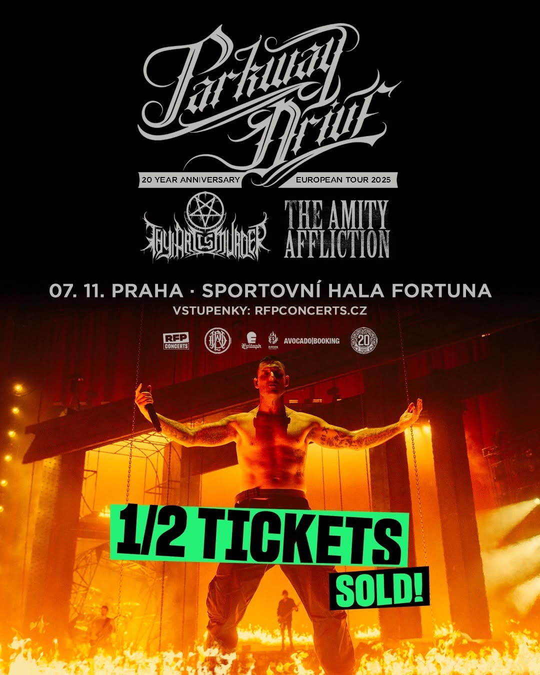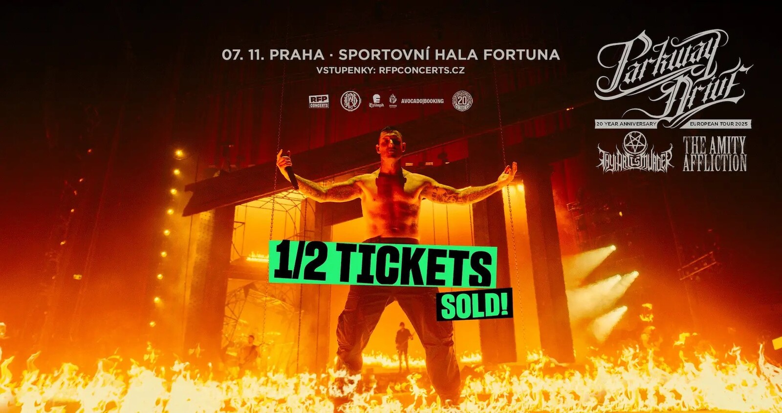 Českým fanouškům dobře známí metalcoroví Parkway Drive se vrací do České republiky po neuvěřitelně nabušeném vystoupení na Rock for People 2024, kde publikum zanechali v úžasu. Kapela, jejíž živá vystoupení jsou považována za legendární svou energií, drivem a velkolepou produkcí, rozproudí 7. listopadu 2025 Sportovní halu Fortuna během svého PARKWAY DRIVE 20 Year Anniversary European Tour. Doprovázet je budou jako speciální hosté krajané Thy Art Is Murder a The Amity Affliction.