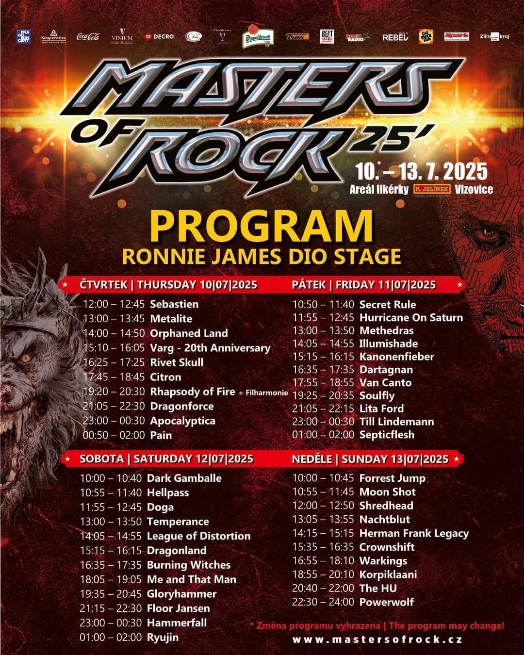 Program MASTERS OF ROCK 2025 – Ronnie James Dio Stage: