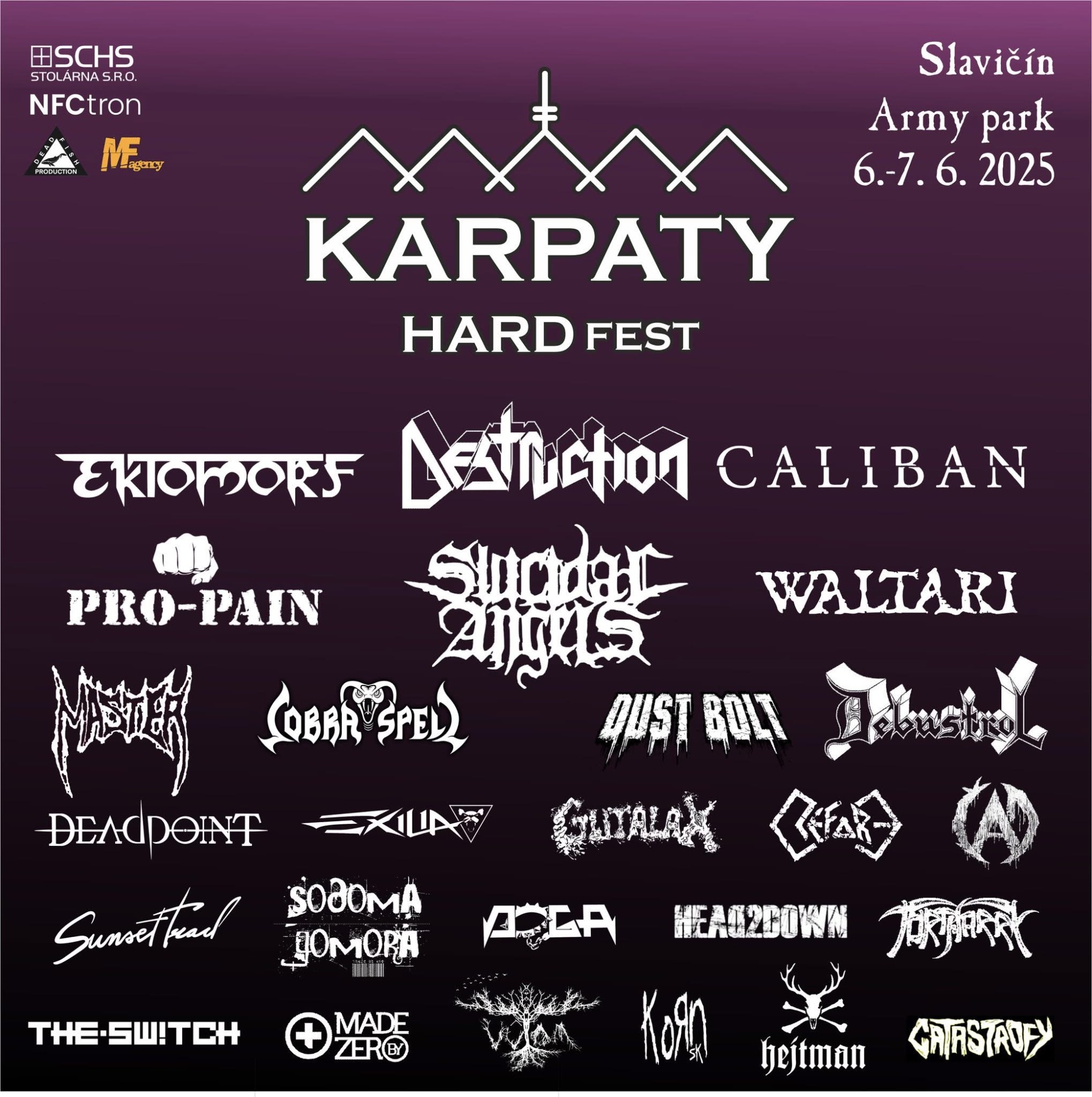 Zcela nový metalový festival Karpaty Hard fest se uskuteční 6. - 7. 6. 2025 v Army parku ve Slavičíně, v části Divnice (na mapy.cz najdete jako Muzeum vojenské techniky).