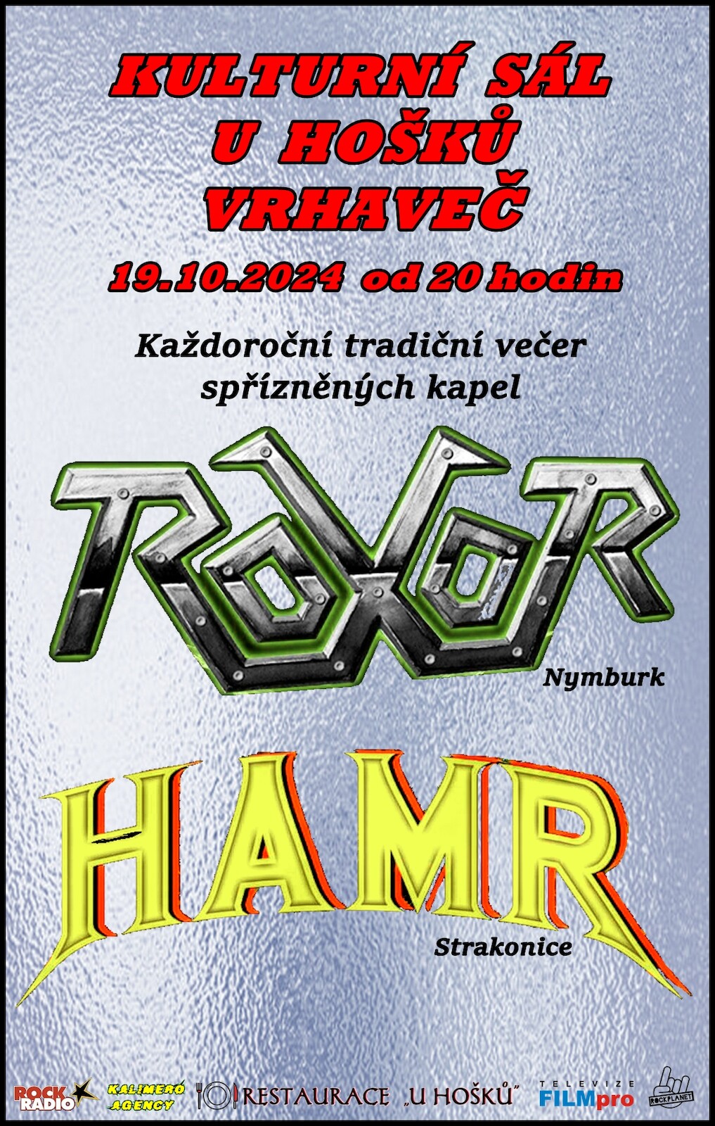 Již počtvrté v řadě se na podiu v restauraci ,,U Hošků,, ve Vrhavči u Klatov potkají kapely ROXOR a HAMR.