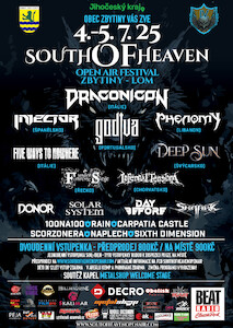 Zbytiny u Prachatic se opět stanou dějištěm jedinečného metalového festivalu! Ve dnech 4.–5. července 2025 proběhne již čtvrtý ročník akce South of Heaven Open Air, která přinese dvoudenní nálož tvrdé hudby v unikátním prostředí kamenolomu. Ve dvou dnech se představí přibližně 20 kapel z celé Evropy. Zahraniční scéna bude zastoupena například thrash metalovými INJECTOR ze Španělska, power prog metalovými FORTRESS UNDER SIEGE z Řecka, italskou metal-punkovou smršť FIVE WAYS TO NOWHERE nebo symphonic death metalovou formací GODIVA z Portugalska. Domácí scénu podpoří ostřílení SHAARK, SOLAR SYSTEM a energičtí power metaloví DONOR.