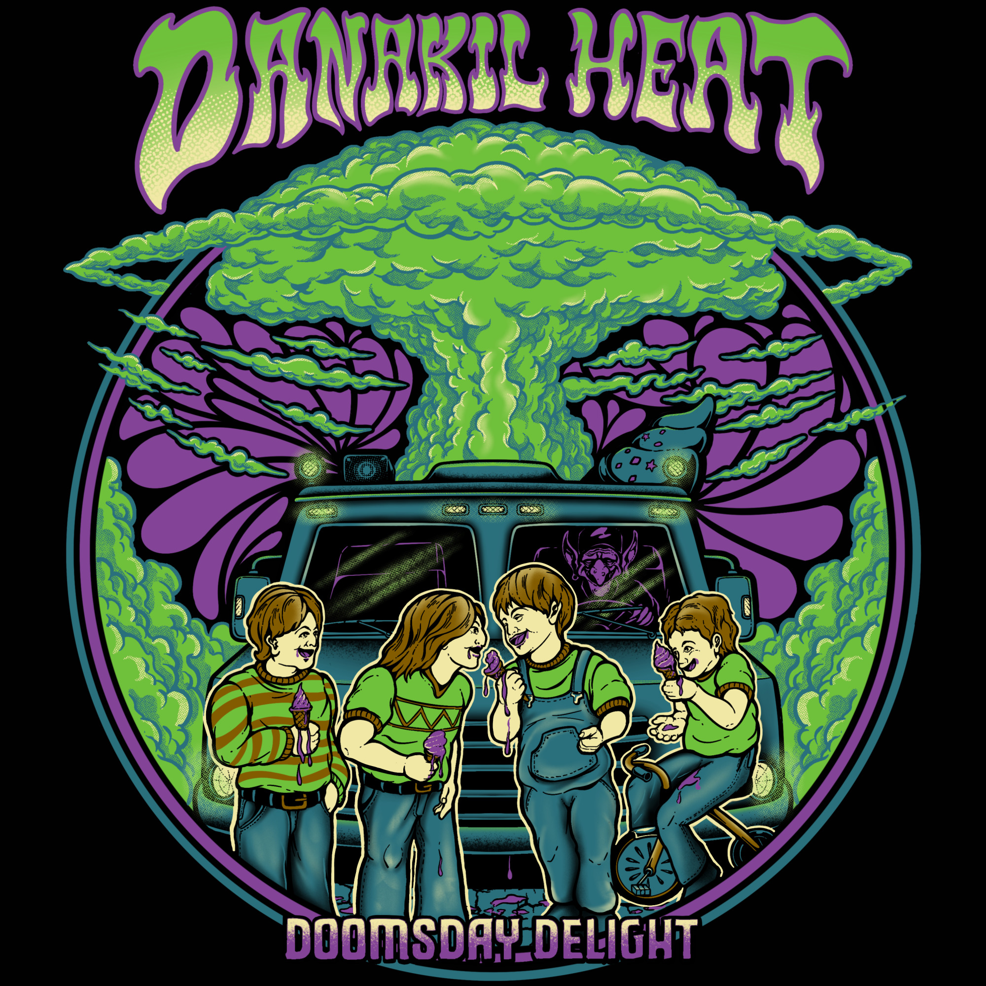 Following their debut Back to the Fire (released Feb 22, 2025), Danakil Heat returns with a sharper, fuzzier, and faster sound on their new 3-track EP Doomsday Delight (released Sep 26, 2025). Across its songs Doomsday Delight, One More Life, and Searching the Stars, the band expands their palette with high-energy riffs and doom-tinged textures while keeping their light-hearted spirit intact.